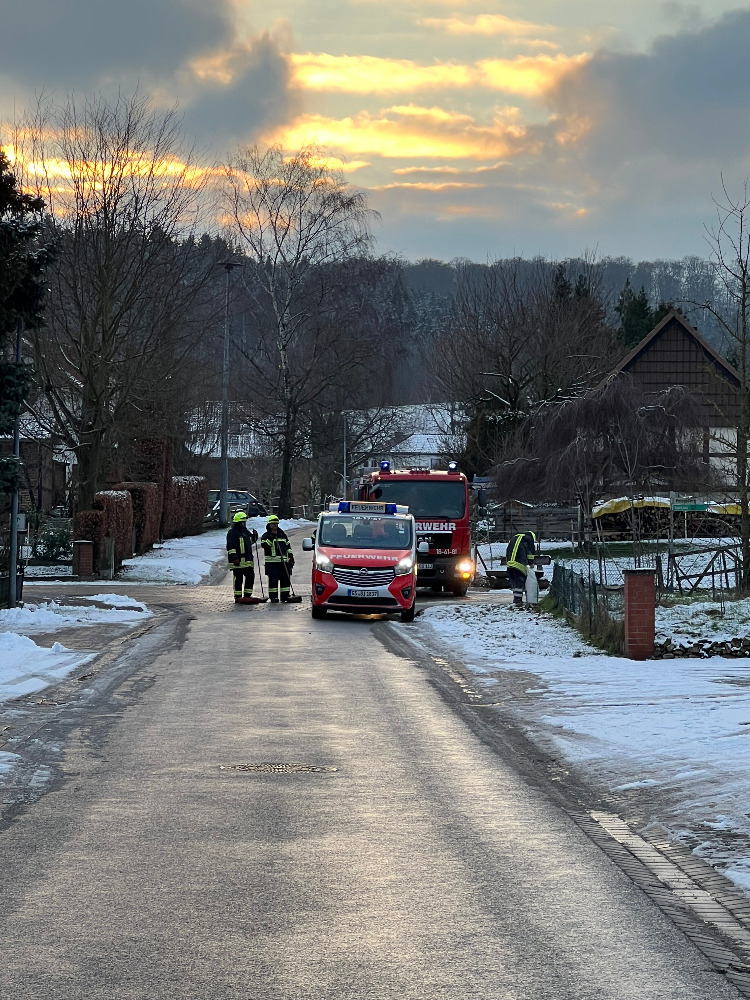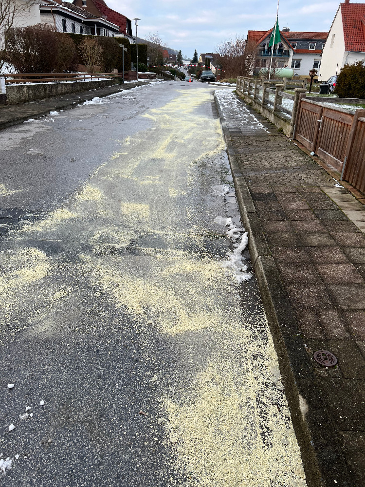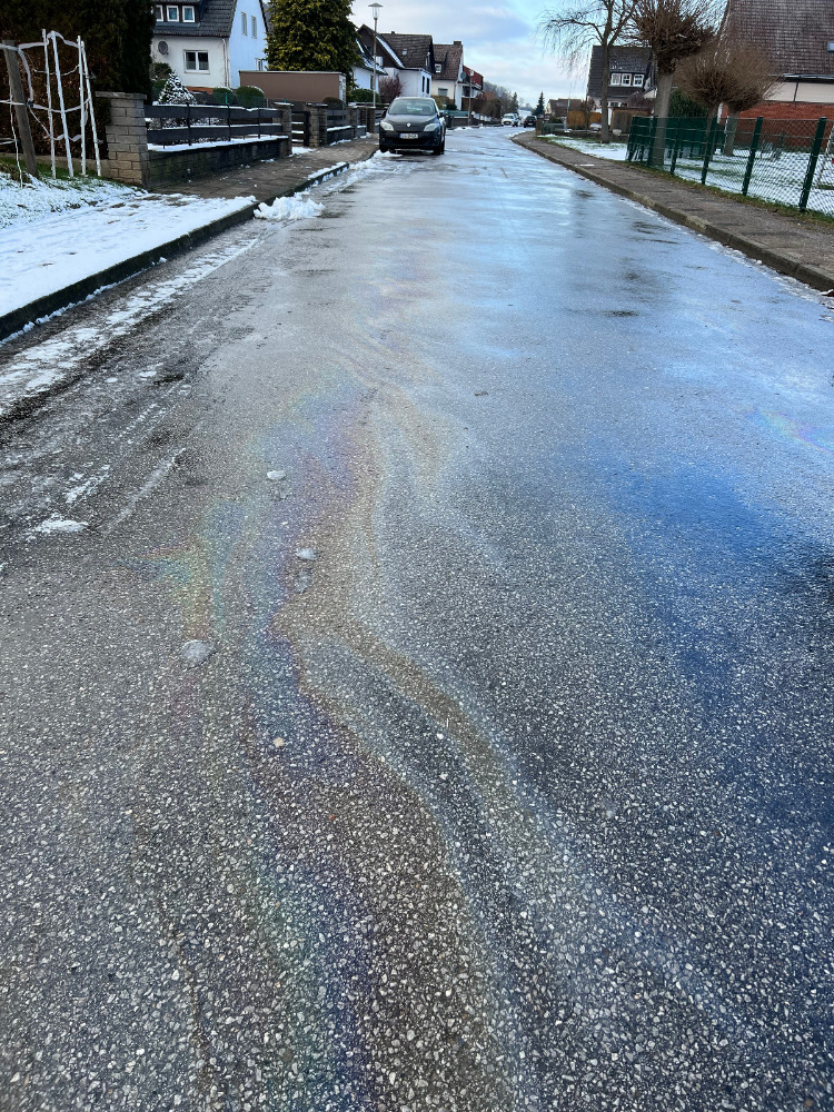 Nach Anwohnerhinweisen konnten wir gegen 14:30 Uhr im Bereich Mühlenstraße, Neustadt, Drei Linden und Petersberg eine massive Ölverschmutzung feststellen. In der Folge wurden die genannten Straßen durch die Ortsfeuerwehren Engelade und Bilderlahe mit Ölbindemittel bearbeitet und Einlaufsperren an den Regenwasserabläufen am Petersberg ausgebracht. Zeitweise mussten einzelne Bereiche komplett für den Durchgangsverkehr gesperrt werden.